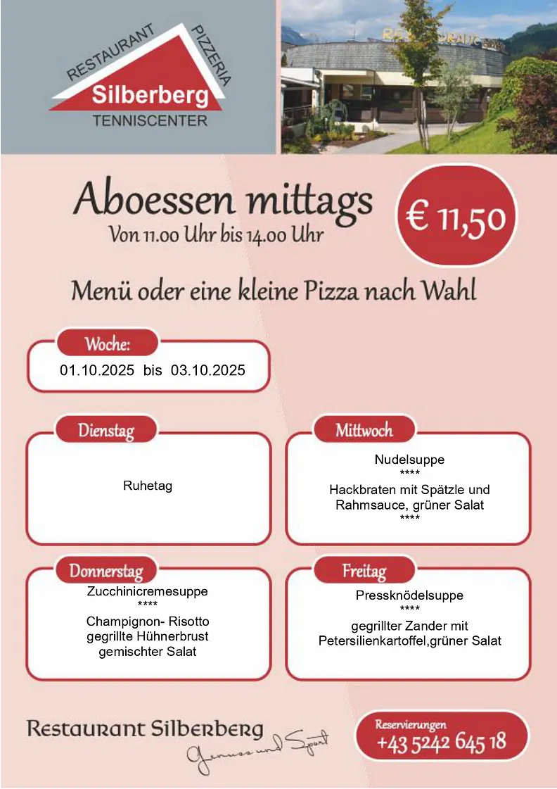 Unser Mittagsmenü in Schwaz - dein Aboessen in Tirol